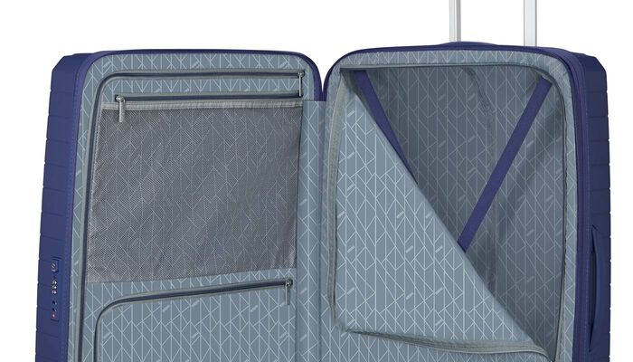 - Oberes Fach mit Trennpolster, Bändern und Taschen