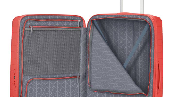 • Oberes Fach mit Trennpolster, Bändern und Taschen