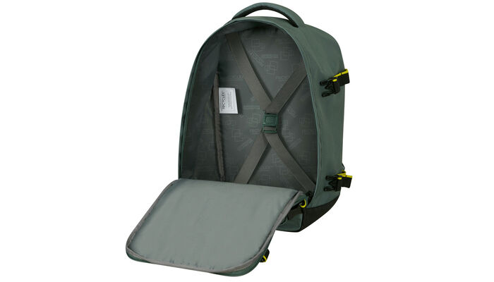 In der Seitentasche mit elastischer Stoffeinteilung kannst du deine Wasserflasche leicht verstauen