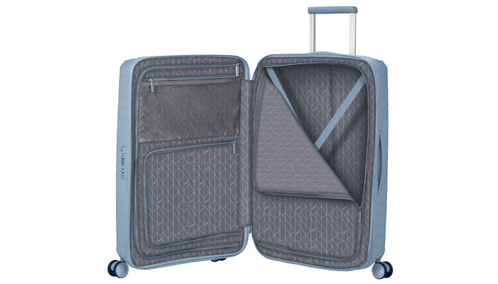 - Oberes Fach mit Trennpolster, Bändern und Taschen